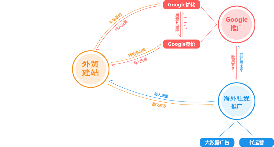 三亚外贸推广公司为您提供全面的“整合”方案,为您的企业提供全生命周期的精细化服务和咨询。为此,我们搭建了从广告投放到SEO优化,从内容运营到网站开发,从品牌策划到电商运营的近100人的团队,组成了一家集全球渠道资源、人才资源、技术资源为一体的数字营销机构,为您一站式解决出海难题,实现品牌全球推广!